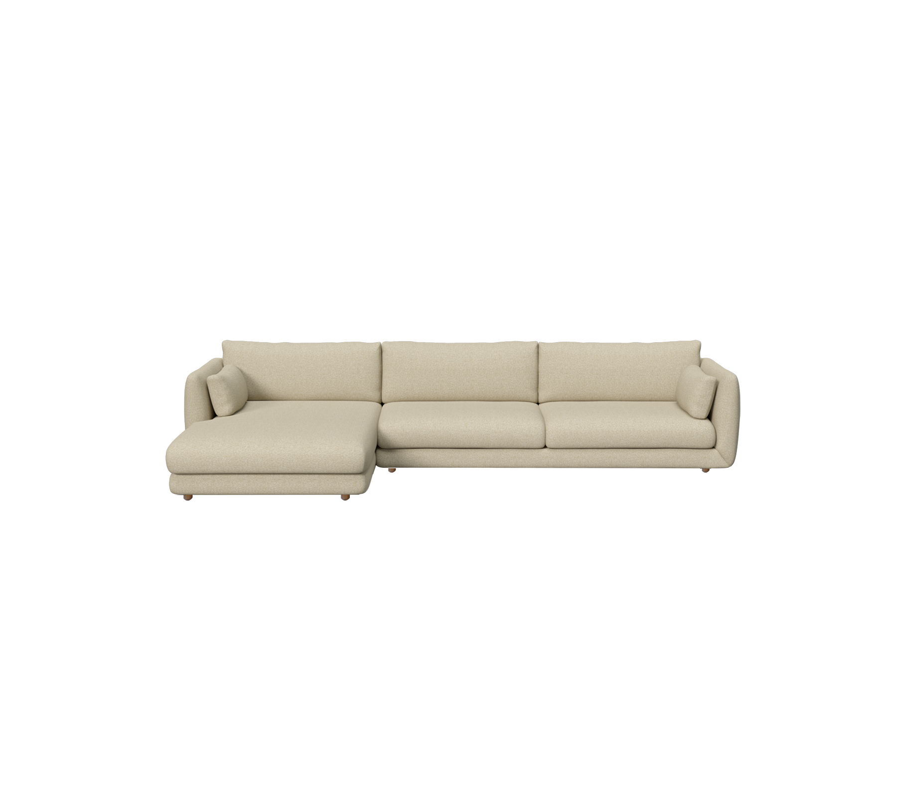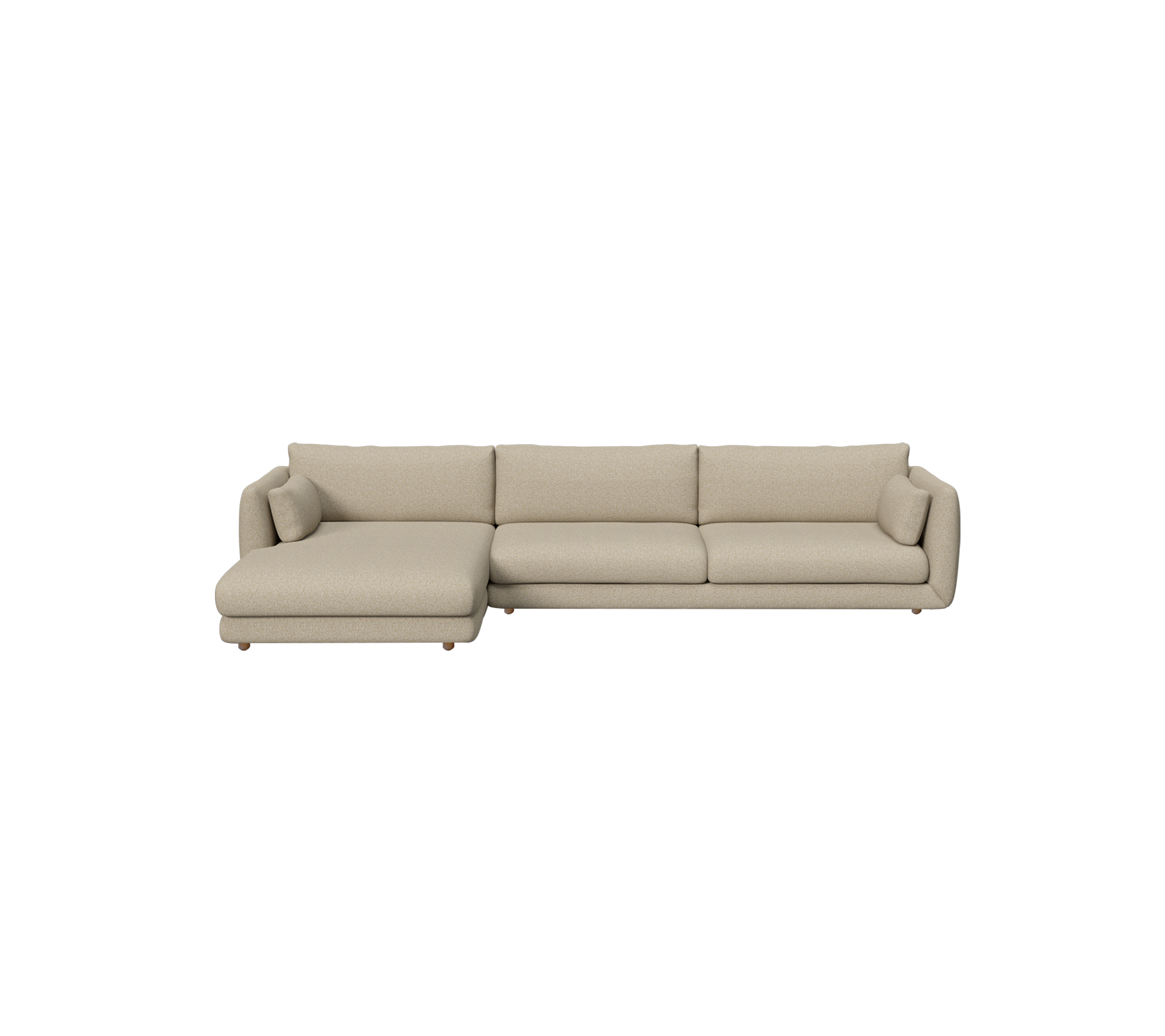 The Bloom 3-seater sofa with right-hand chaise longue by Cane-line Design blends softness and sophistication. With its teak legs, the sofa brings lightness and warmth to any room, while the chaise longue provides extended space to unwind in quiet luxury. The fully upholstered design and deep cushions create a focal point of enduring elegance for refined modern interiors. Prefer a more grounded expression? Choose the Bloom 3-seater chaise longue sofa with plinth, or the left-hand model with teak legs for a different layout.